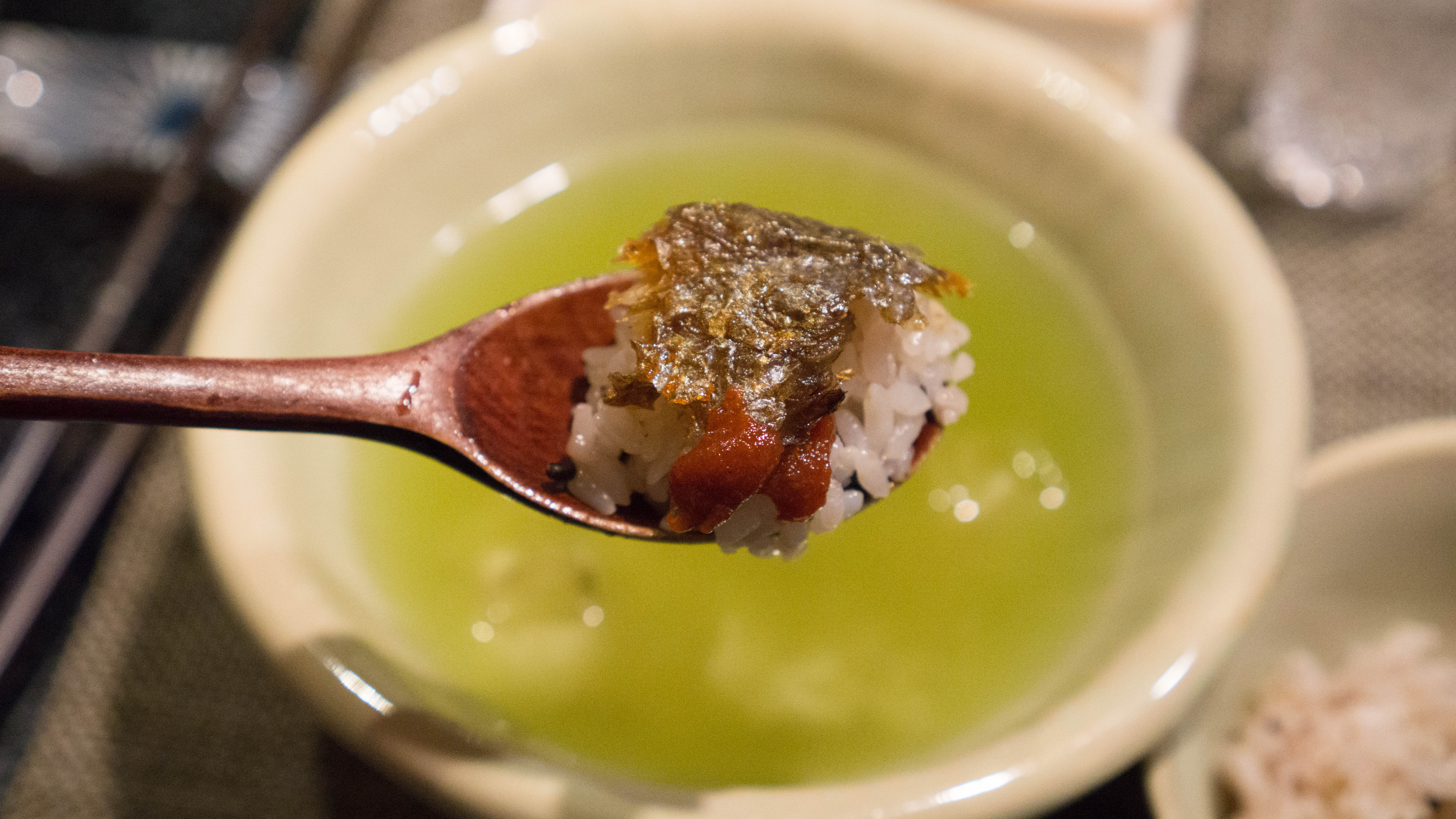 녹차 물에 밥을 말아서 보리굴비와 함께 먹는 게 정석이라고 한다.