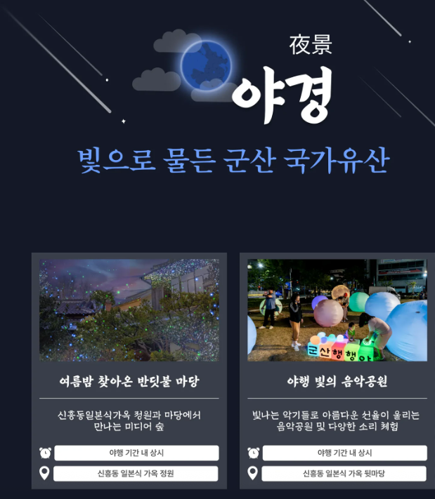 군산 야행 : 025년 군산 야행은 8월에 두 차례 열립니다.