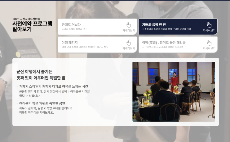 군산 국가유산 야행 홈페이지입니다. http://gsnightculture.com