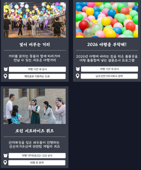 군산은 원래 낮에도 가볼 만한 곳이 많은 도시지만, 야행 기간 동안은 전혀 다른 매력을 보여줍니다.
